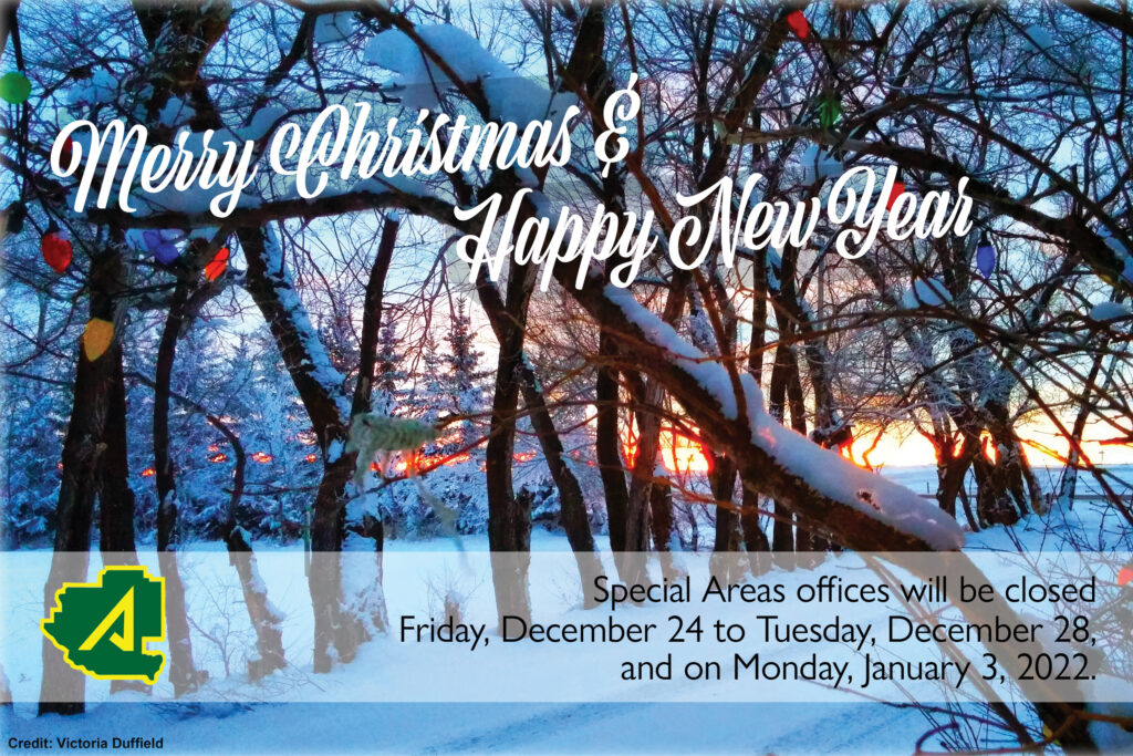Special Areas offices will be closed for the holidays from Friday, December 24 until Tuesday, December 28. Offices will also be closed on Monday, January 3.