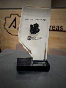 Heartland Generation presented the Special Areas Board with a plaque commemorating the last piece of coal used for power generation. On behalf of the Board, Jordon Christianson thanked Heartland for their continued partnership at Sheerness, speaking to the value they bring to the whole region. Heartland’s ongoing focus on volunteerism and community giving was highlighted as creating meaningful positive impacts in communities throughout the Special Areas. Heartland Generation is one of Alberta’s largest power generators and supplies more than 2,660 MW (gross) of reliable power to industrial, commercial, and residential consumers. You can learn more about Heartland Generation, and the Sheerness Generating Station, at https://www.heartlandgeneration.com/about-us.