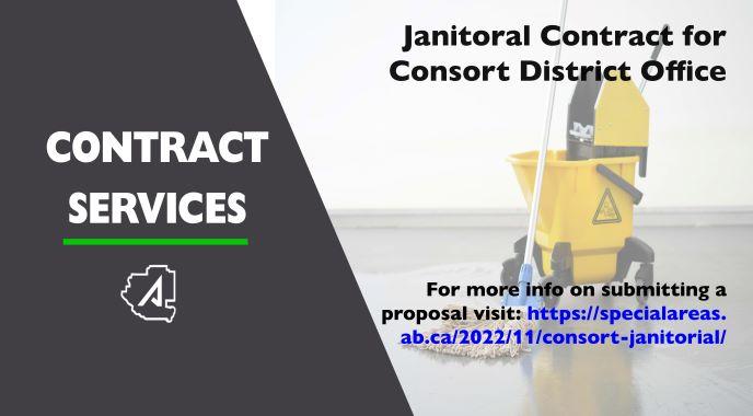 The Special Areas Board is requesting proposals for the provision of janitorial services at the Special Areas Consort Office. Duties to commence January 1, 2023. Successful applicants will be asked to enter into a yearly contract, with the potential for a renewal term of up...