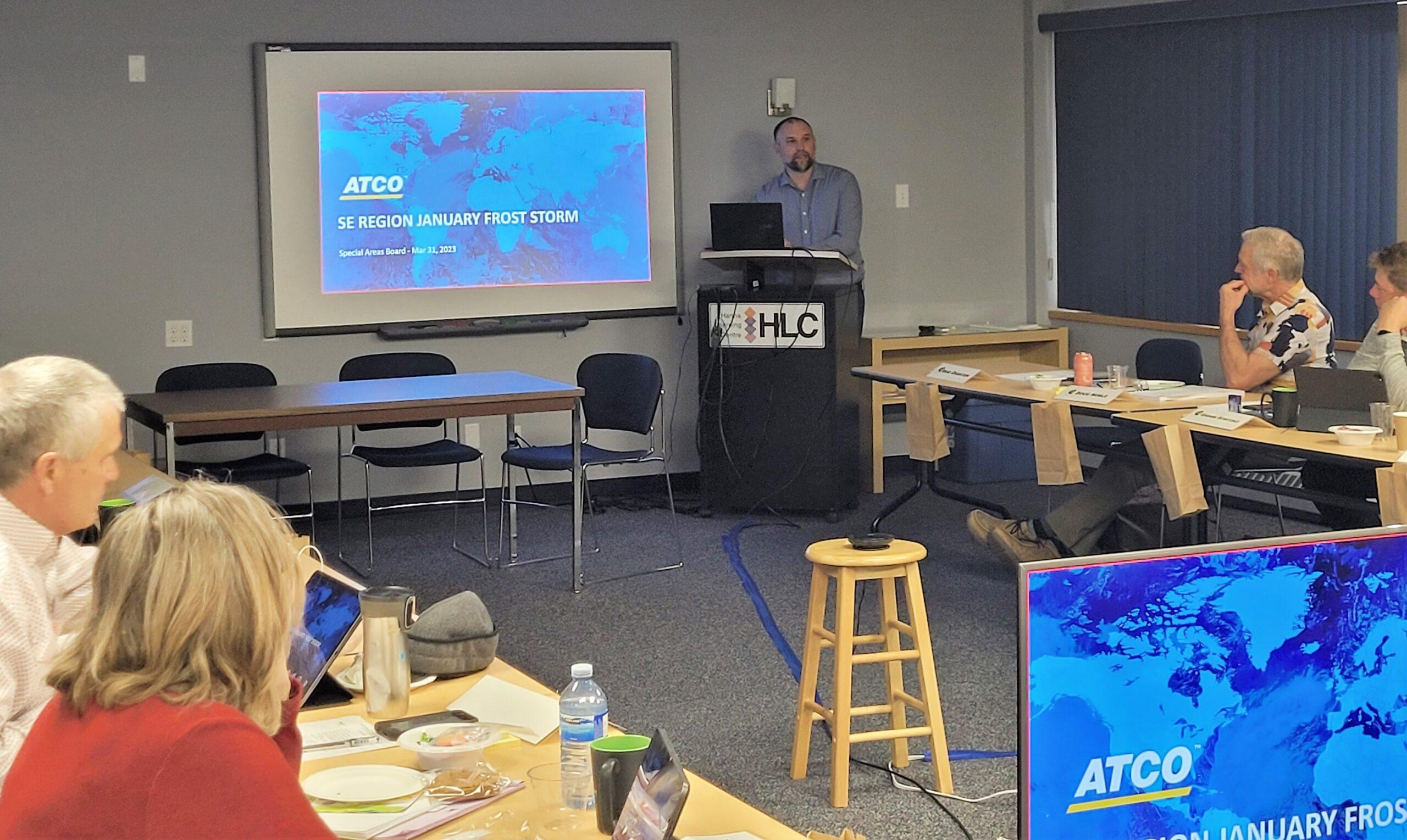 Advisory Council welcomed representatives from ATCO Electric to the meeting. Nick Peelar, Regional Manager for SE Operations, shared a summary of ATCO’s response to January’s ice storm which impacted approximately 295 outages in the Special Areas region. Mr. Peelar highlighted the high volume of calls received during this event, and the resulting long wait times. Alternative ways to report an outage were shared by ATCO, along with a request to help increase public awareness of the My ATCO Electricity App.