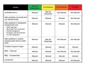 🔥🚫Here is a list of things that are allowed and not allowed under each fire status.