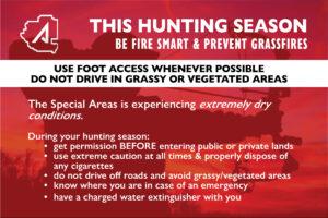 This hunting season, always contact landowners & leaseholders before entering private or public lands. Extremely dry conditions exist throughout the Special Areas, which means you need to use extreme caution.