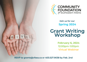 Medicine Hat, Alberta (January 16, 2024) – The Community Foundation of Southeastern Alberta will launch their Spring 2024 Community Grants on February 6th after their Grant Writing Workshop. All registered charities, qualified donees, and non-profits are welcome to attend the virtual workshop to learn about the updated Grant Guidelines.
