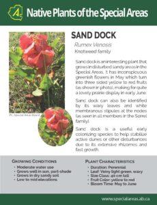 Sand dock is a useful early colonizing species to help stabilize active dunes or other disturbances due to its extensive rhizomes and fast growth.