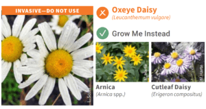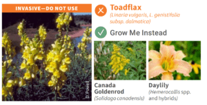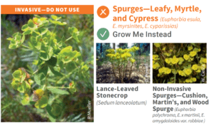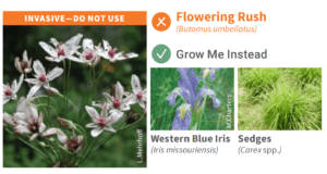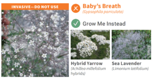 Our Ag Service Dept has helped managed escapees from baby’s breath, blueweed, dames rocket, yellow clematis, yellow toadflax and purple loosestrife to name a few. The Invasive Species Council of BC has a great Grow Me Instead Brochure to help guide your ornamental choices to lessen the invasive impact to our natural ecosystems.