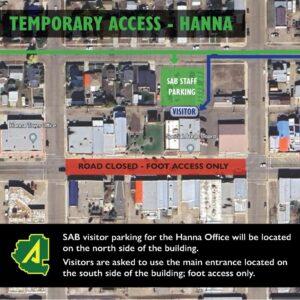Beginning Monday, June 10, access to Special Areas offices in Hanna will be impacted due to the closure of 2nd Ave W. This road closure will impact access to the Hanna office for approximately 6 to 8 weeks.