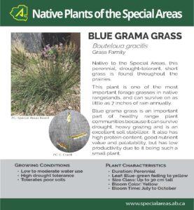 Blue grama grass is an important part of healthy range plant communities because it can survive drought, heavy grazing and is an excellent soil stabilizer. It also has high protein content, good nutrient value and palatability, but has low productivity due to it being such a small plant. This is one reason why it’s important blue grama grass is present within a healthy mix of other more productive grasses.