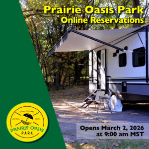 - Reservations for Prairie Oasis Park open: Monday, March 2 at 9:00AM MST