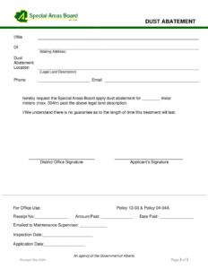 Form to request dust abatement by SAB forces