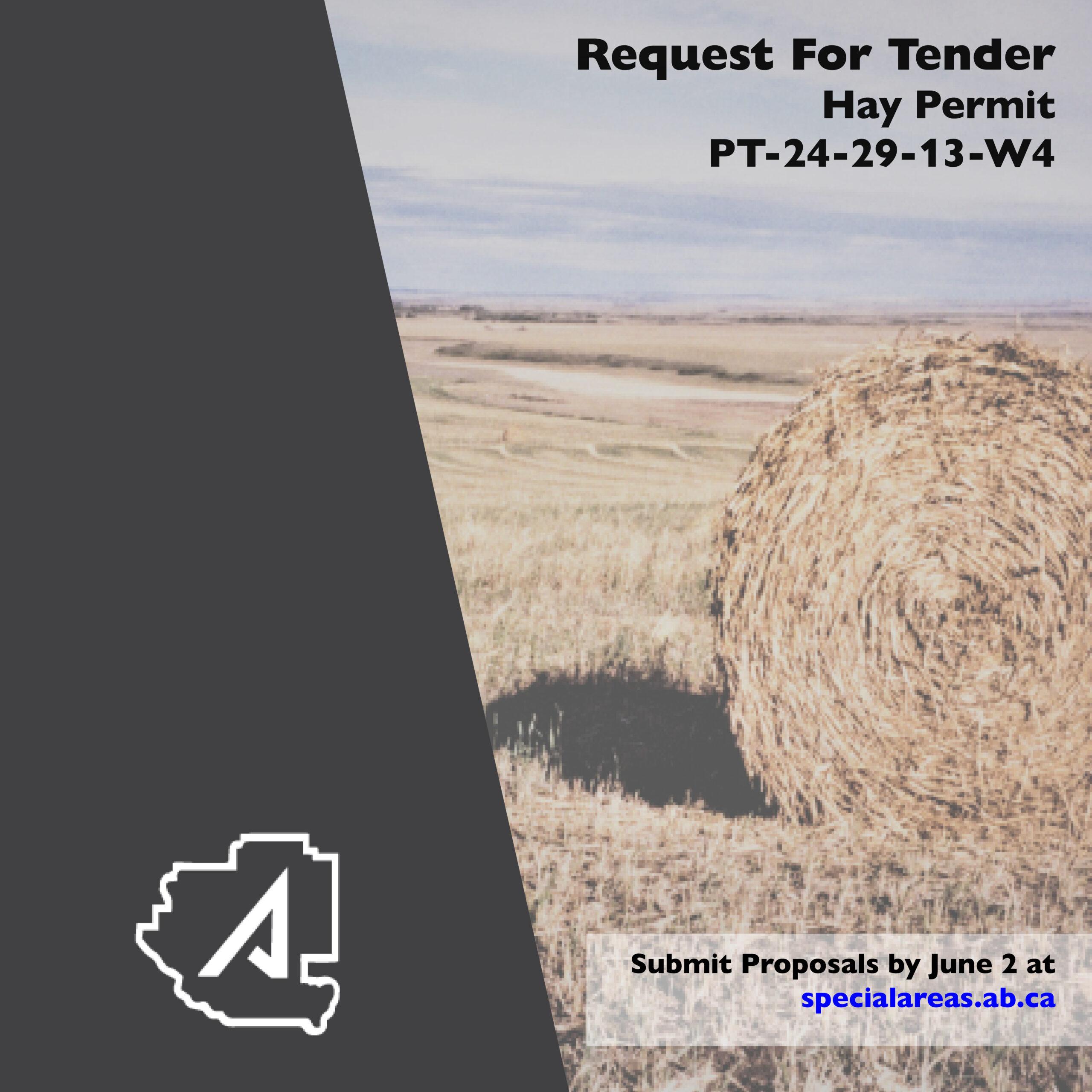 Hay Permit – Portion of Section 24-29-13-W4M The Special Areas Board is requesting bids for a Hay Permit covering the following location and area: portion of Section 24-29-13-W4 (approximately 180 acres south of the Hwy 577). All applicants must adhere to the Alberta Regulation 137/2001, Special Areas...