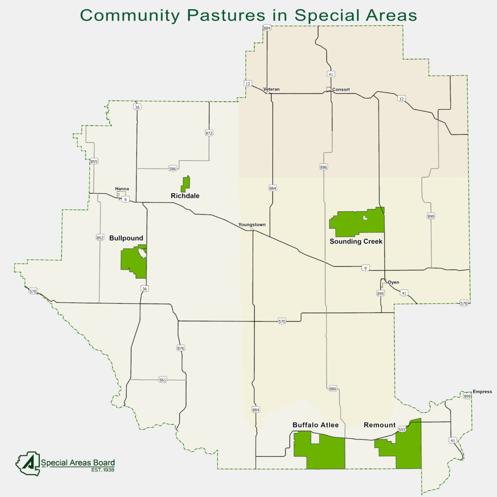 Applications can be picked up at any Special Areas district office, and must be received by any district office by December 31 for a patron to be eligible to receive allotments in the upcoming season. Community pasture allotments are determined based on applications submitted each year. Applications are reviewed for compliance with the Community Pasture Policy and for completeness.