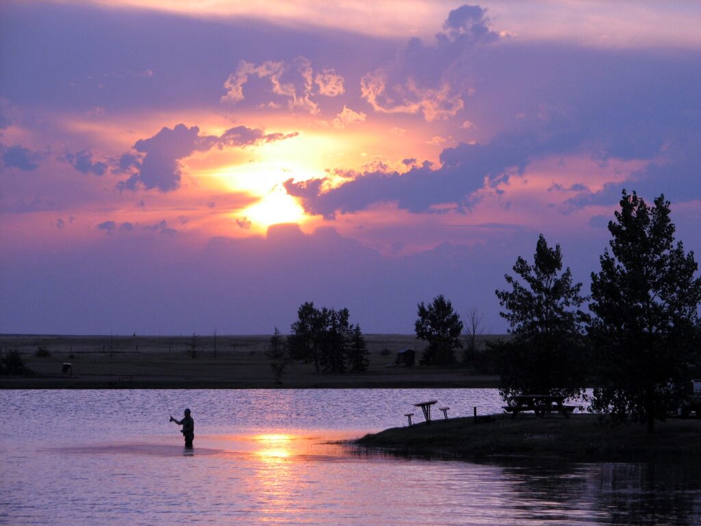 Blood Indian Park is a popular fishing destination in Alberta’s grasslands. Here, anglers enjoy shoreline fishing and easy access to floating docks and boat launches. The reservoir is stocked with over 175,000 fingerling trout each year, including Brook, Brown, Rainbow, and Tiger Trout.